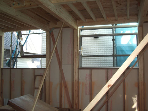 現時点で、 「土地造成工事」 →「地盤調査」 →「杭施工」 →「基礎工事」 →「上棟」 →「『フラット35』(※)の中間検査」 が終わった段階。 年内竣工を目指し、着々と工事が進行中なのです。